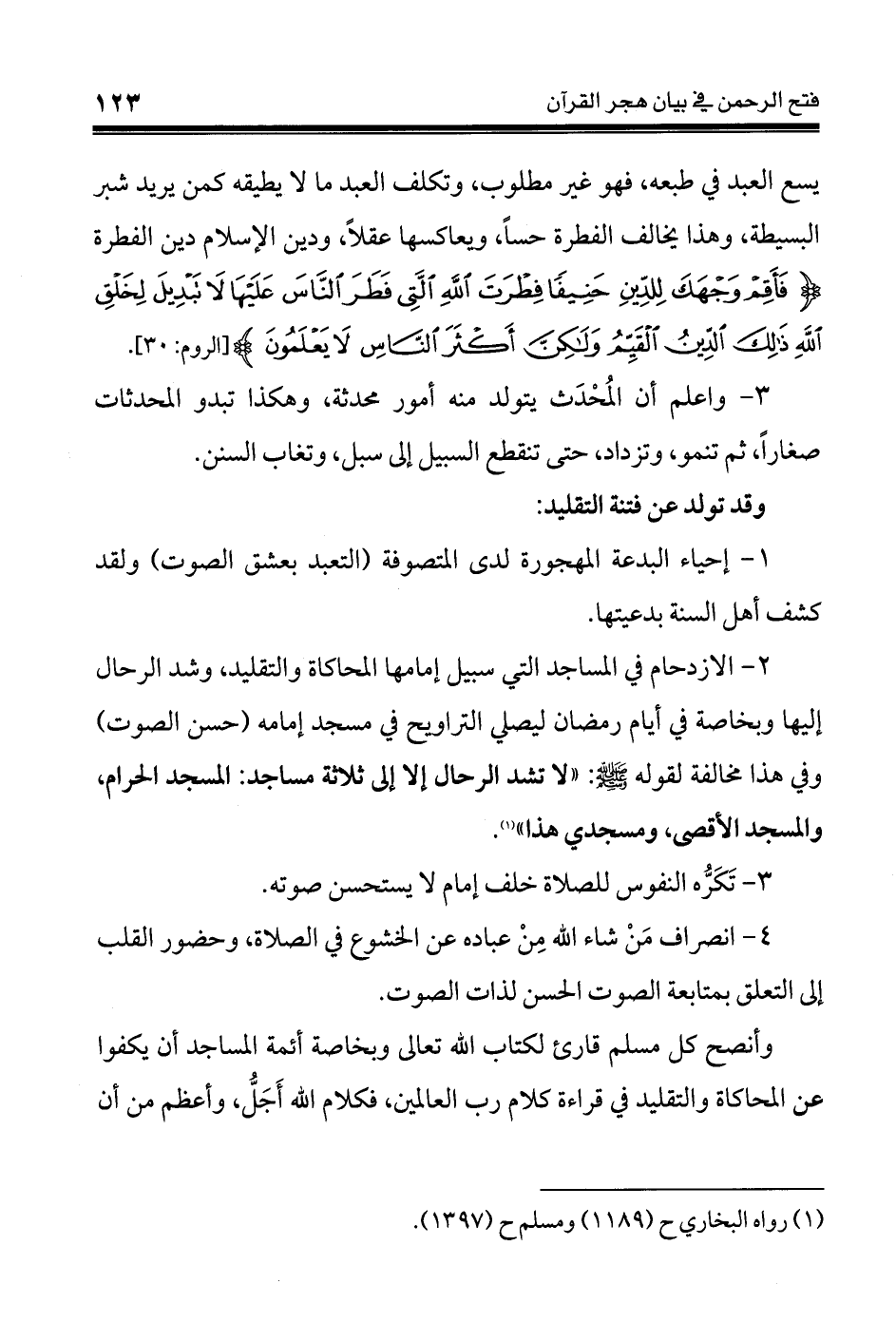 2 - الازدحام في المساجد التي سبيل إمامها المحاكاة والتقليد، وشد الرحال إليها وبخاصة في أيام رمضان ليصلي التراويح في مسجد إمامه (حسن الصوت) وفي هذا مخالفة لقوله - صلى الله عليه وسلم -: " لا تشد الرحال إلا إلى ثلاثة مساجد: المسجد الحرام، والمسجد الأقصى، ومسجدي هذا " (¬1)