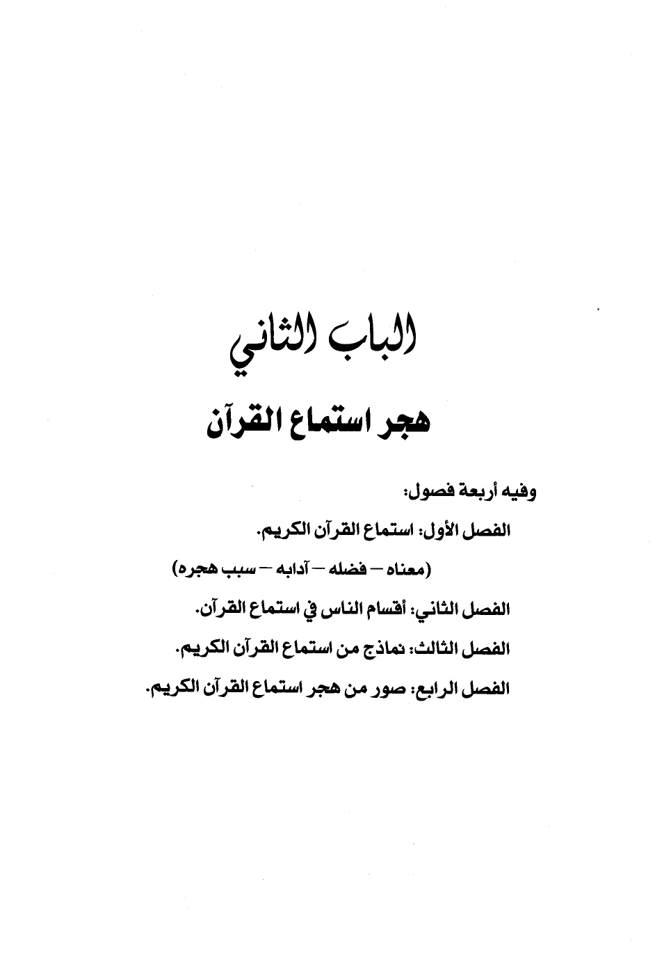 الفصل الأول: استماع القرآن الكريم (معناه - فضله - آدابه - سبب هجره).
