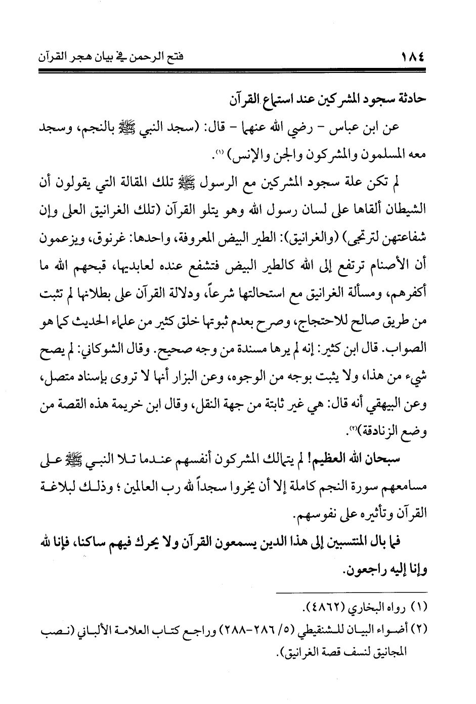 (¬2) أضواء البيان للشنقيطي (5/ 286 - 288) وراجع كتاب العلامة الألباني (نصب المجانيق لنسف قصة الغرانيق).