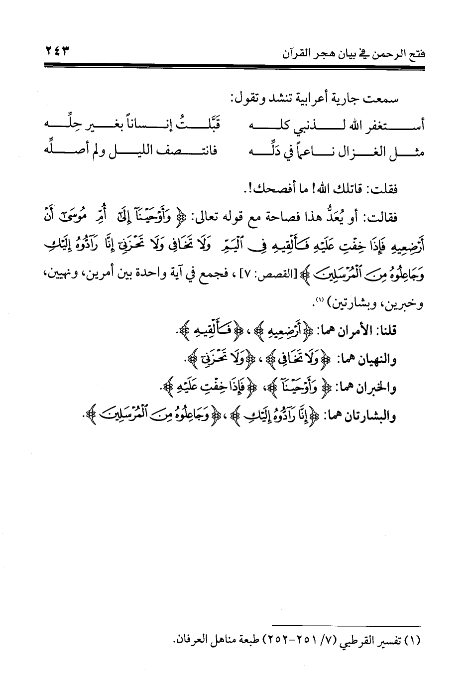 (¬1) تفسير القرطبي (7/ 251 - 252) طبعة مناهل العرفان.