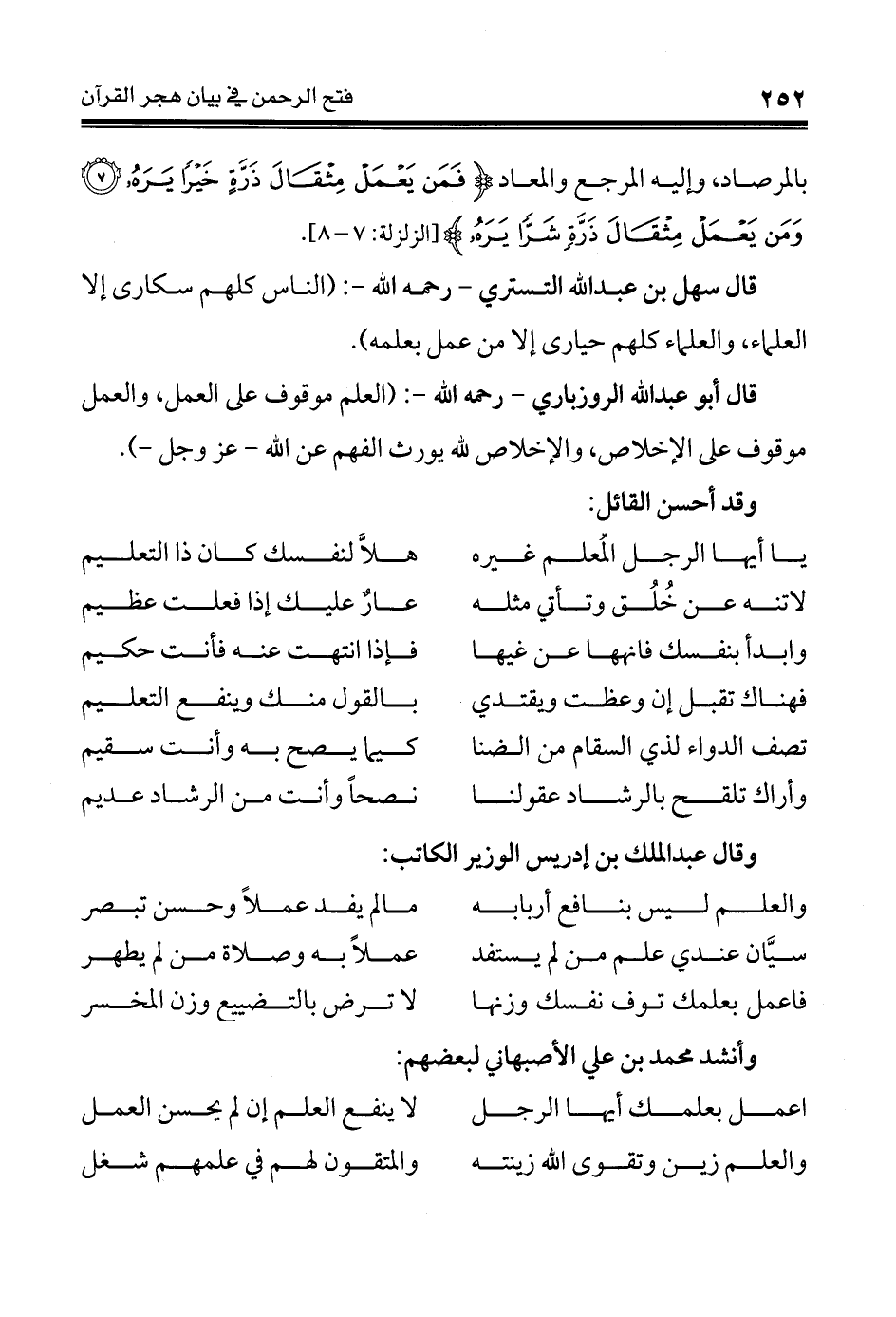 والعلم ليس بنافع أربابه ... مالم يفد عملاً وحسن تبصر