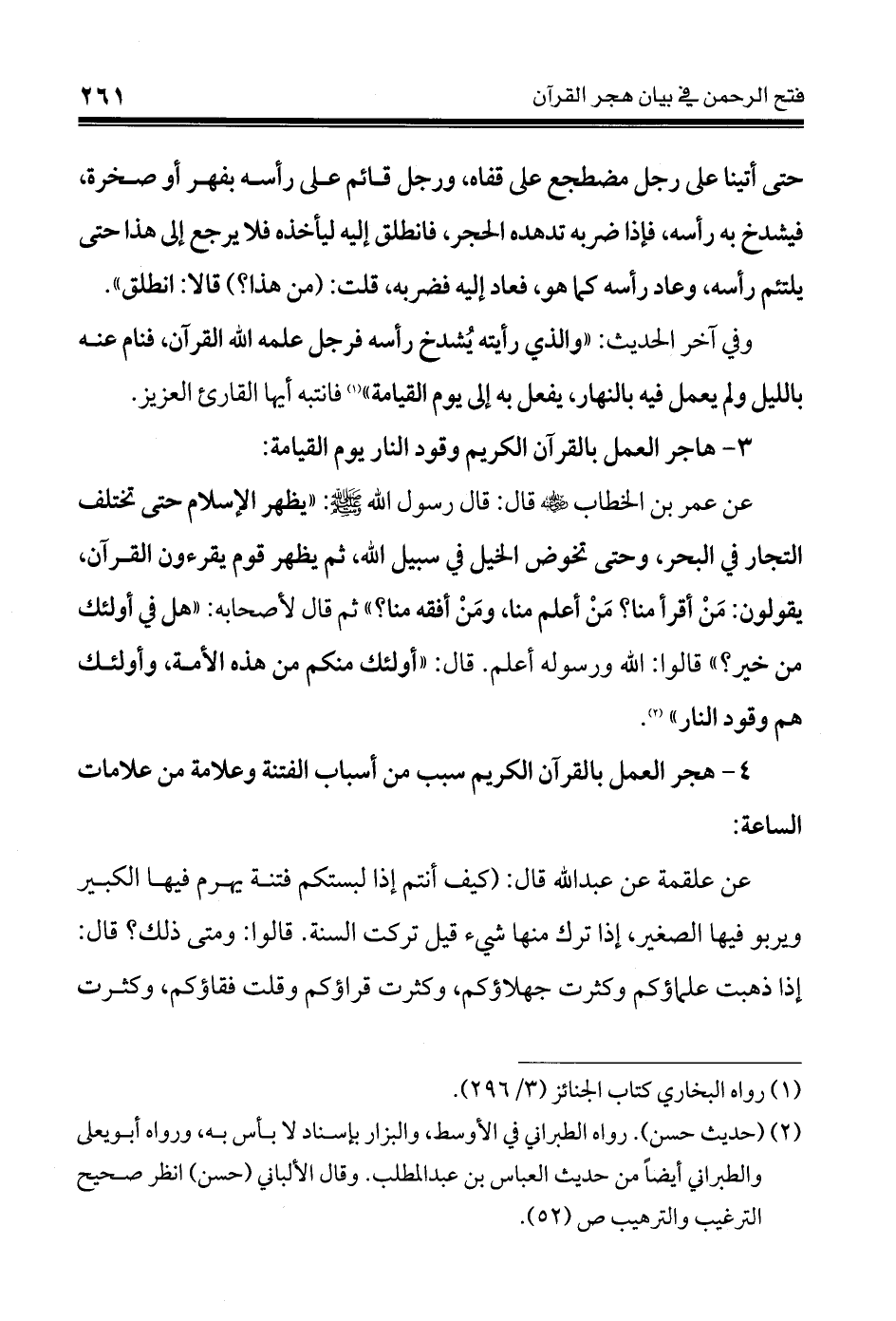 4 - هجر العمل بالقرآن الكريم سبب من أسباب الفتنة وعلامة من علامات الساعة: