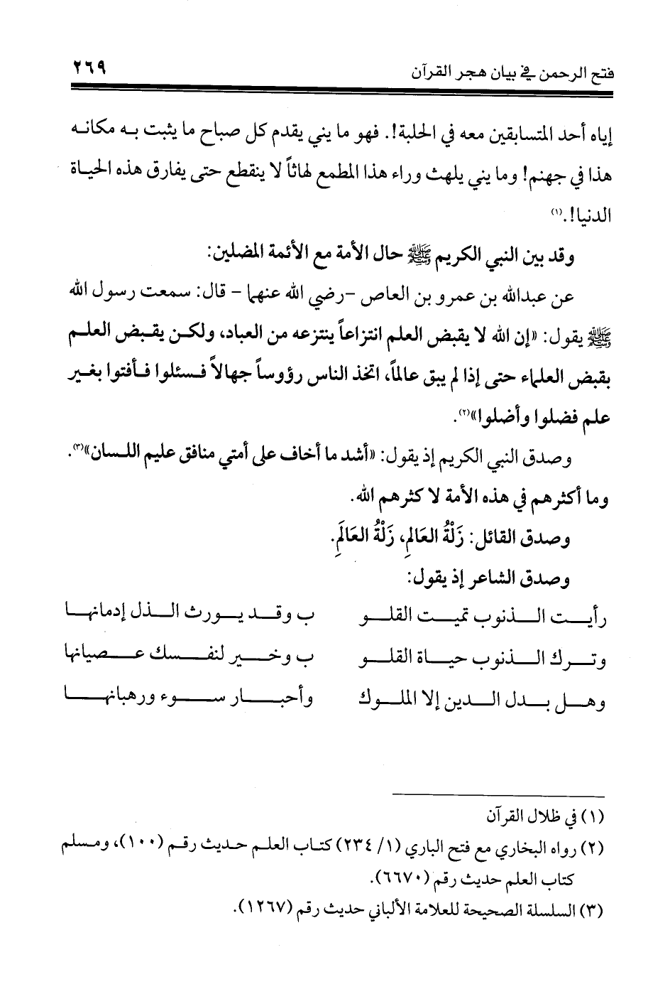 (¬2) رواه البخاري مع فتح الباري (1/ 234) كتاب العلم حديث رقم (100)، ومسلم كتاب العلم حديث رقم (6670).