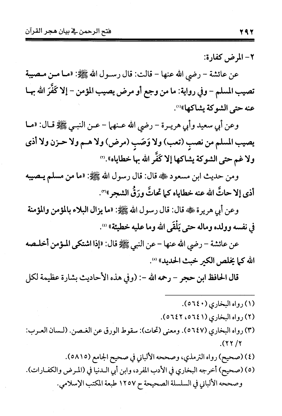 (¬5) (صحيح) أخرجه البخاري في الأدب المفرد، وابن أبي الدنيا في (المرض والكفارات). وصححه الألباني في السلسلة الصحيحة ح 1257 طبعة المكتب الإسلامي. .