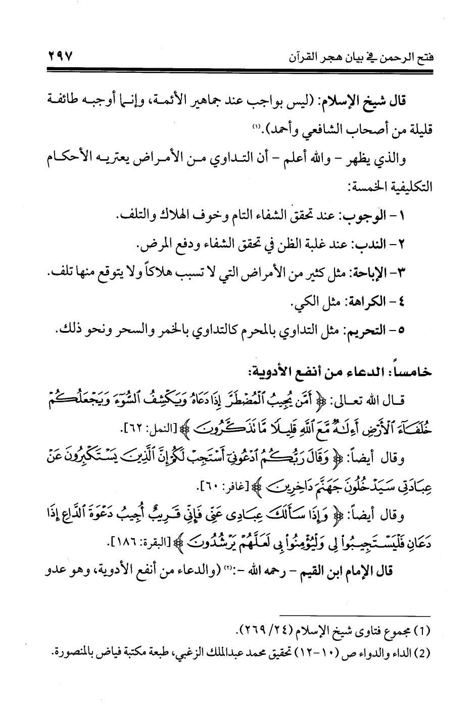 (¬2) الداء والدواء ص (10 - 11 - 12) تحقيق محمد عبد الملك الزغبي، طبعة مكتبة فياض بالمنصورة.