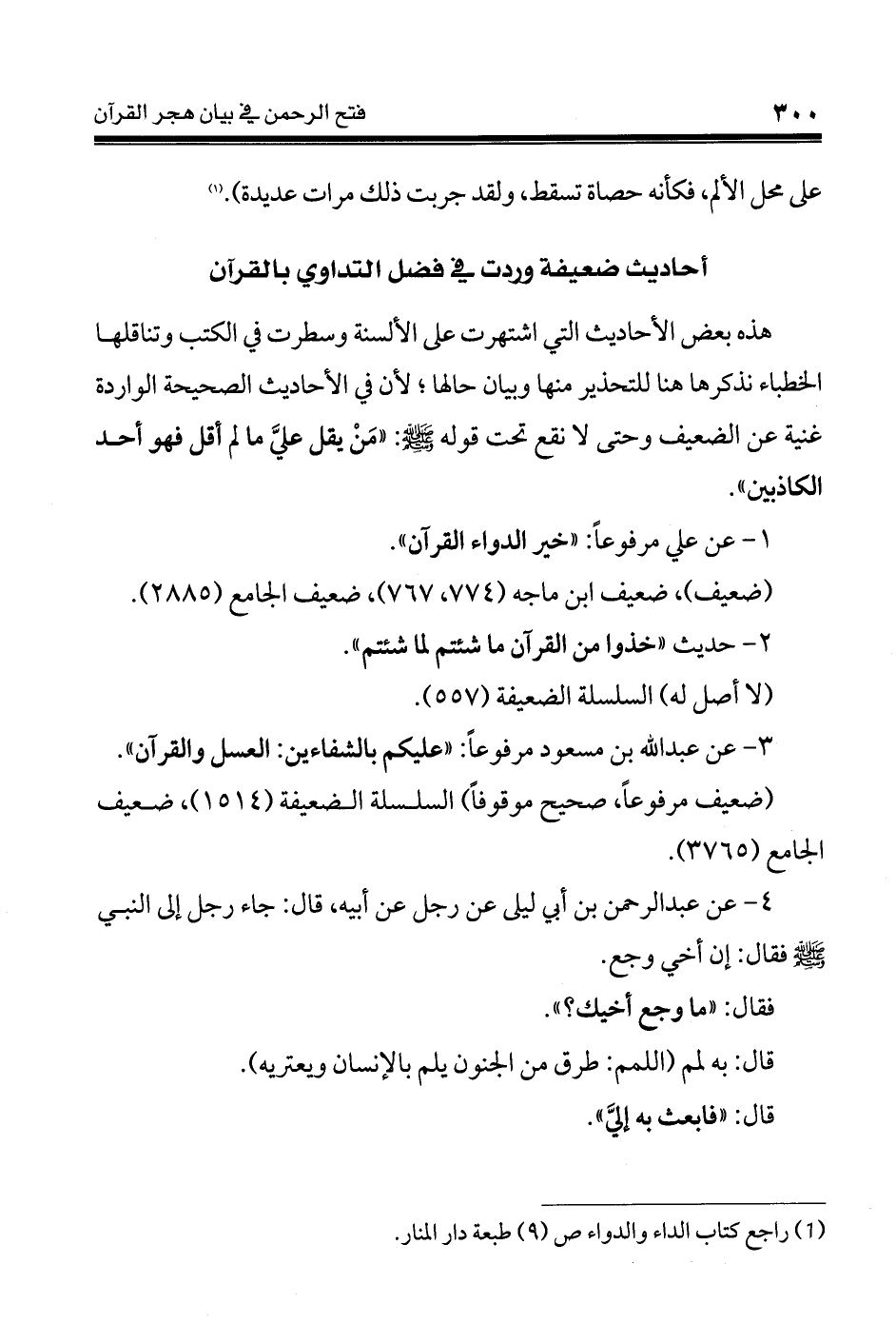 سابعاً: أحاديث ضعيفة وردت في فضل التداوي بالقرآن: