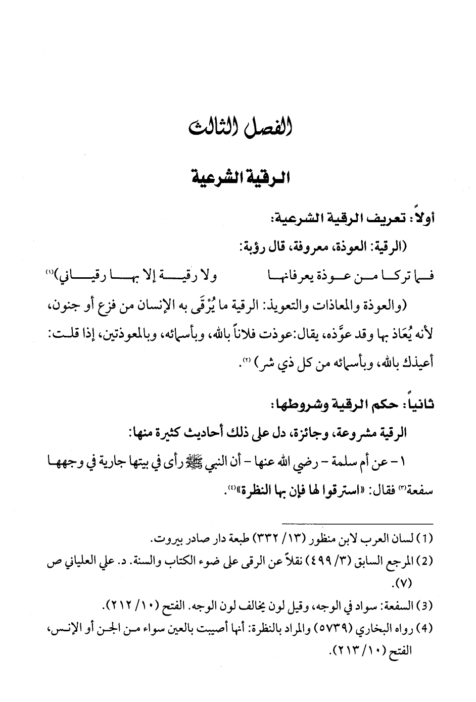 (¬2) المرجع السابق (3/ 499) نقلاً عن الرقي على ضوء الكتاب والسنة. د. علي العلياني ص (7).