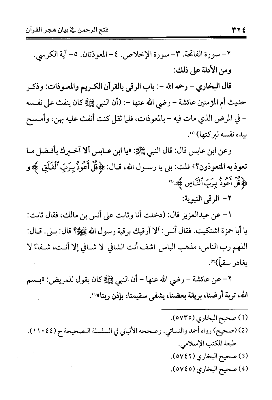 قال البخاري - رحمه الله -: باب الرقى بالقرآن الكريم والمعوذات: