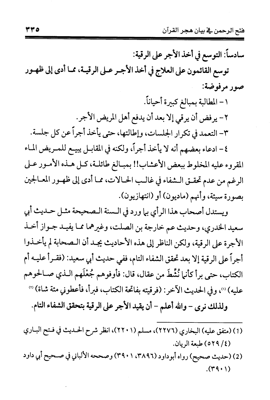 ولذلك نرى - والله أعلم - أن يقيد الأجر على الرقية بتحقق الشفاء التام.