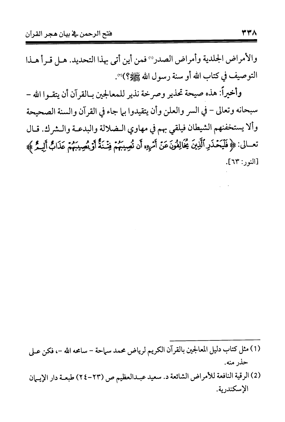 (¬1) مثل كتاب دليل المعالجين بالقرآن الكريم الرياض محمد سماحة - سامحه الله -، فكن على حذر منه.