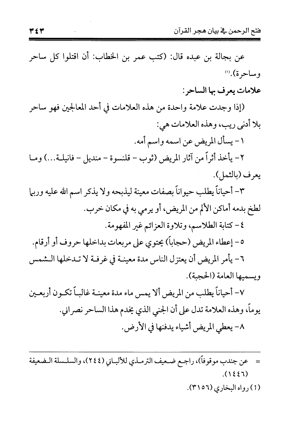 عن بجالة بن عبده قال: (كتب عمر بن الخطاب: أن اقتلوا كل ساحر وساحرة). (¬1)