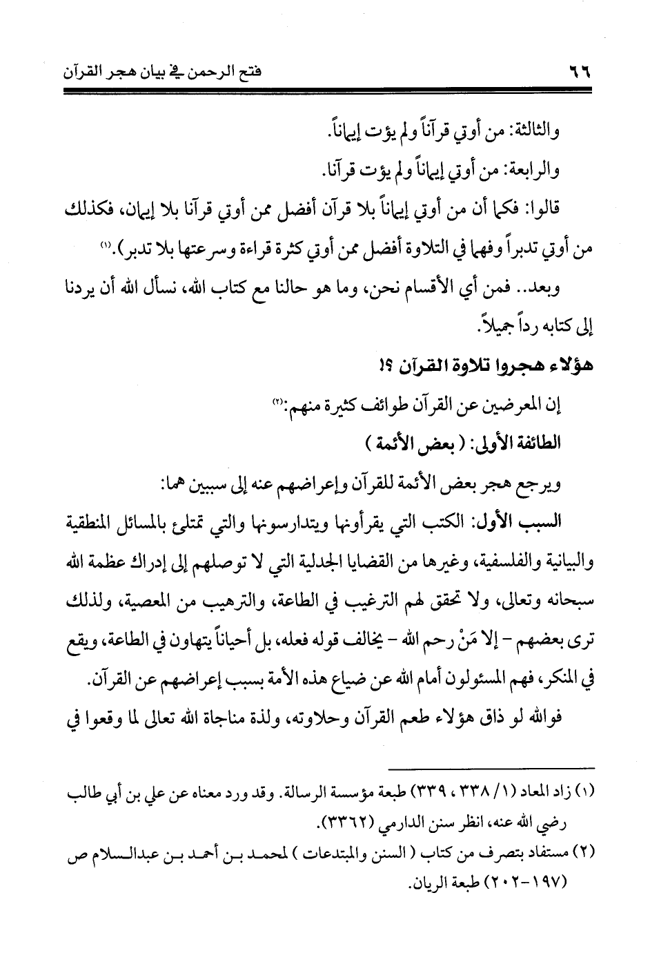 ويرجع هجر بعض الأئمة للقرآن وإعراضهم عنه إلى سببين هما: