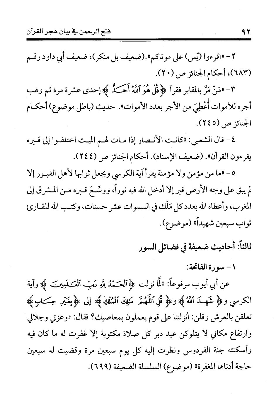 ثالثاً: أحاديث ضعيفة في فضائل السور