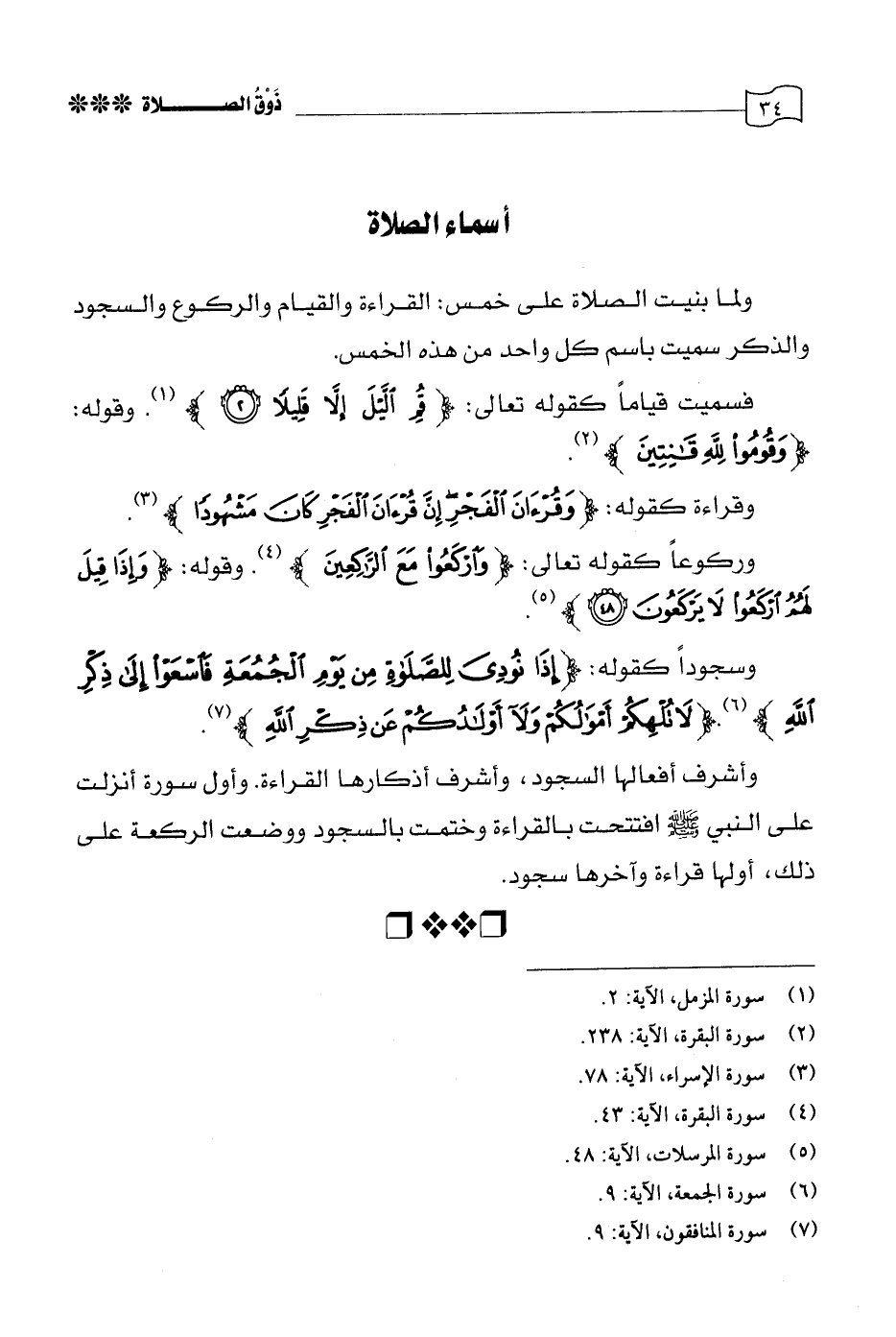 ولما بنيت الصلاة على خمس: القراءة والقيام والركوع والسجود والذكر سميت باسم كل واحد من هذه الخمس.