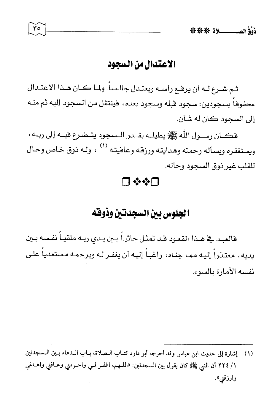 (¬1) إشارة إلى حديث ابن عباس وقد أخرجه أبو داود كتاب الصلاة باب الدعاء بين السجدتين (1/ 224) أن النبي - صلى الله عليه وسلم - كان يقول بين السجدتين: «اللهم اغفر لي وارحمني وعافني واهدني وارزقني».