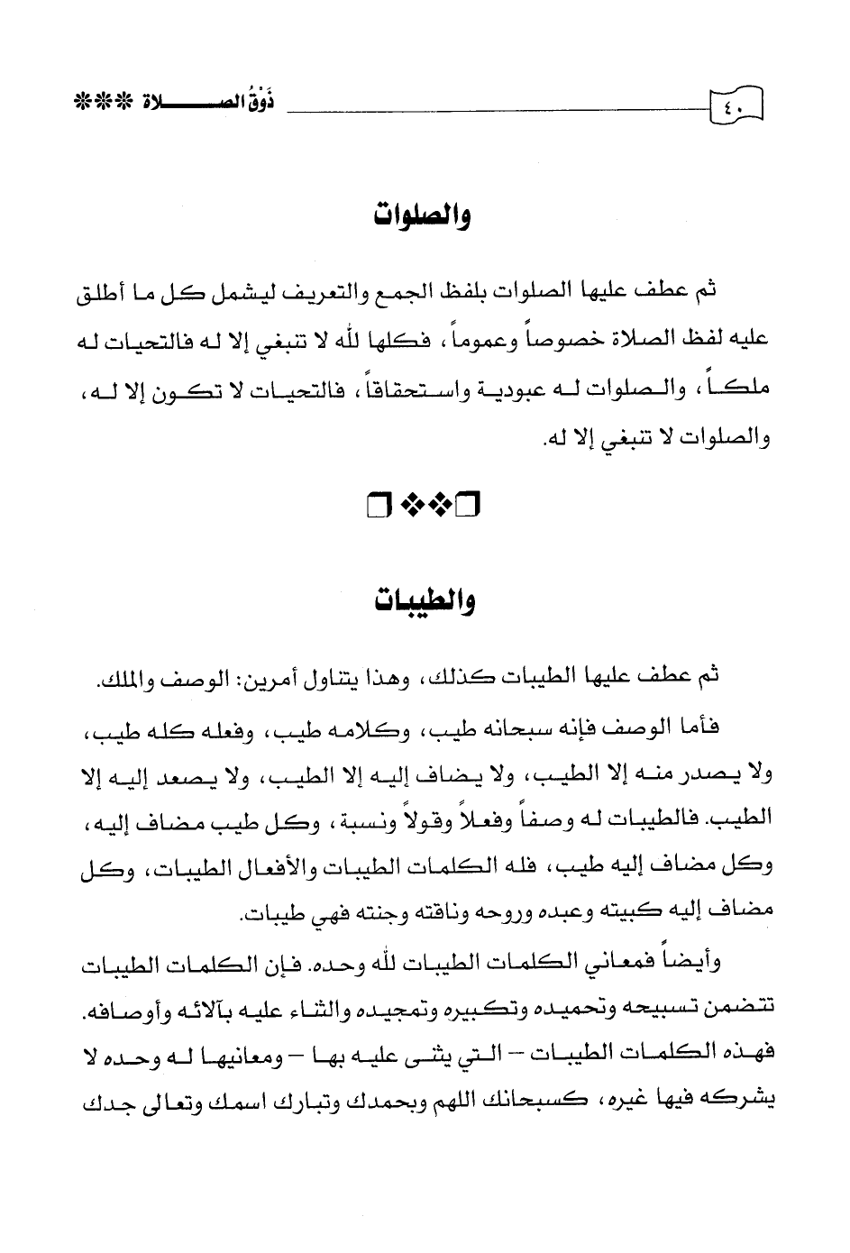 ثم عطف عليها الصلوات بلفظ الجمع والتعريف ليشمل كل ما أطلق عليه لفظ الصلاة خصوصًا وعمومًا فكلها لله لا تنبغي إلا له فالتحيات له ملكًا، والصلوات له عبودية واستحقاقًا فالتحيات لا تكون إلا له والصلوات لا تنبغي إلا له.