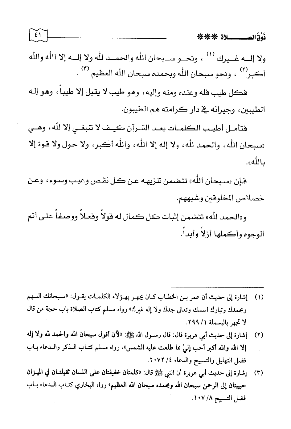 فتأمل أطيب الكلمات بعد القرآن كيف لا تنبغي إلا لله، وهي «سبحان الله، والحمد لله، ولا إله إلا الله، والله أكبر، ولا حول ولا قوة إلا بالله».