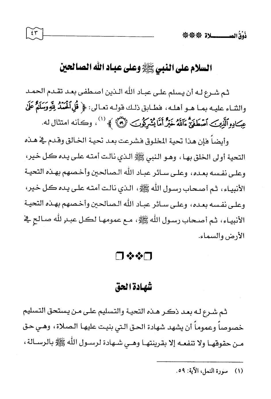 السلام على النبي - صلى الله عليه وسلم - وعلى عباد الله الصالحين