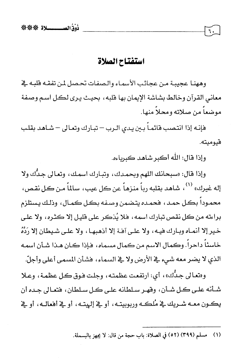وههنا عجيبة من عجائب الأسماء والصفات تحصل لمن تفقه قلبه في معاني القرآن وخالط بشاشة الإيمان بها قلبه، بحيث يرى لكل اسم وصفة موضعًا من صلاته ومحلاً منها.