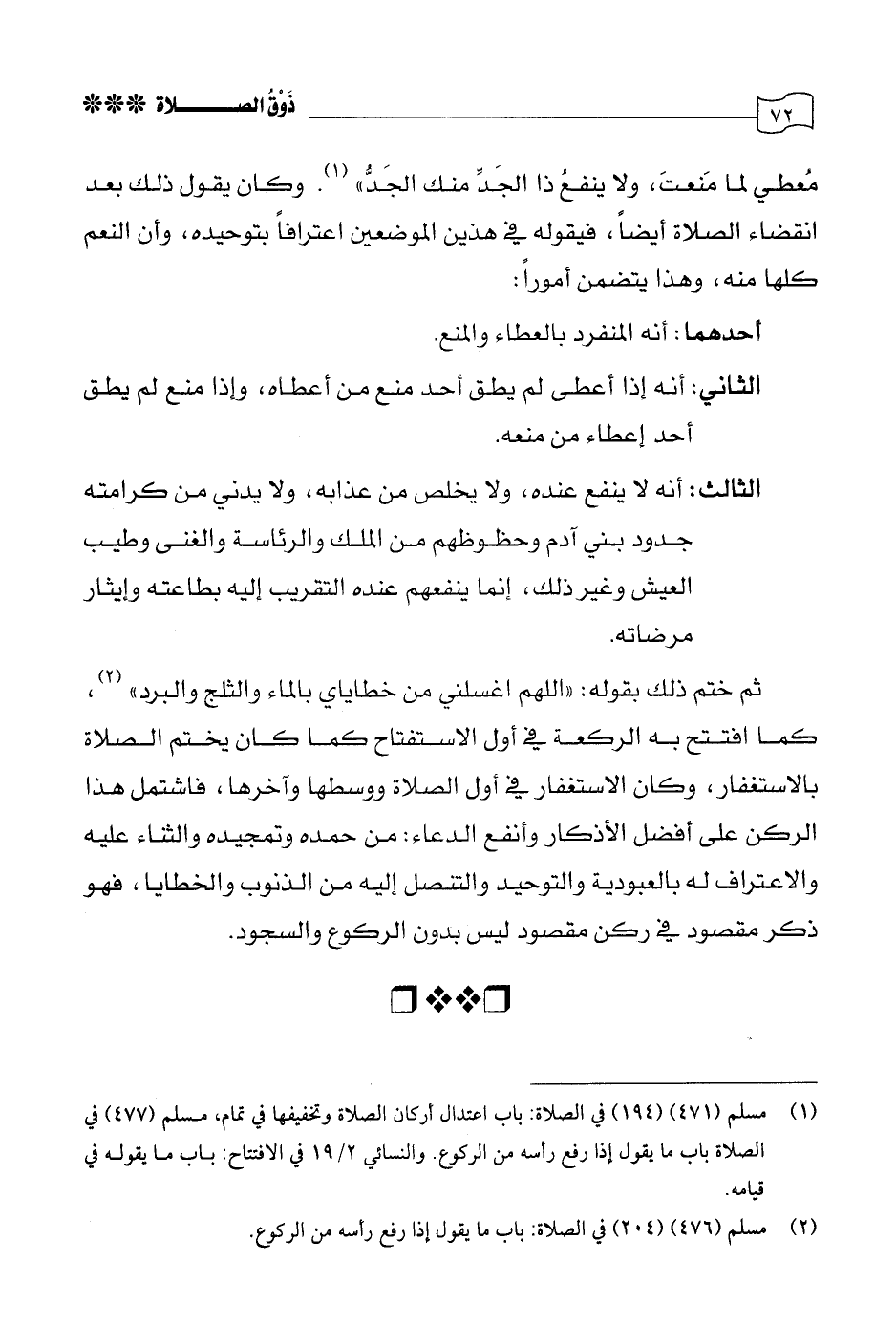 (¬1) مسلم (471) (194) في الصلاة: باب اعتدال أركان الصلاة وتخفيفها في تمام مسلم (477) في الصلاة باب ما يقول إذا رفع رأسه من الركوع والنسائي (2/ 19) في الافتتاح: باب ما يقوله في قيامه.