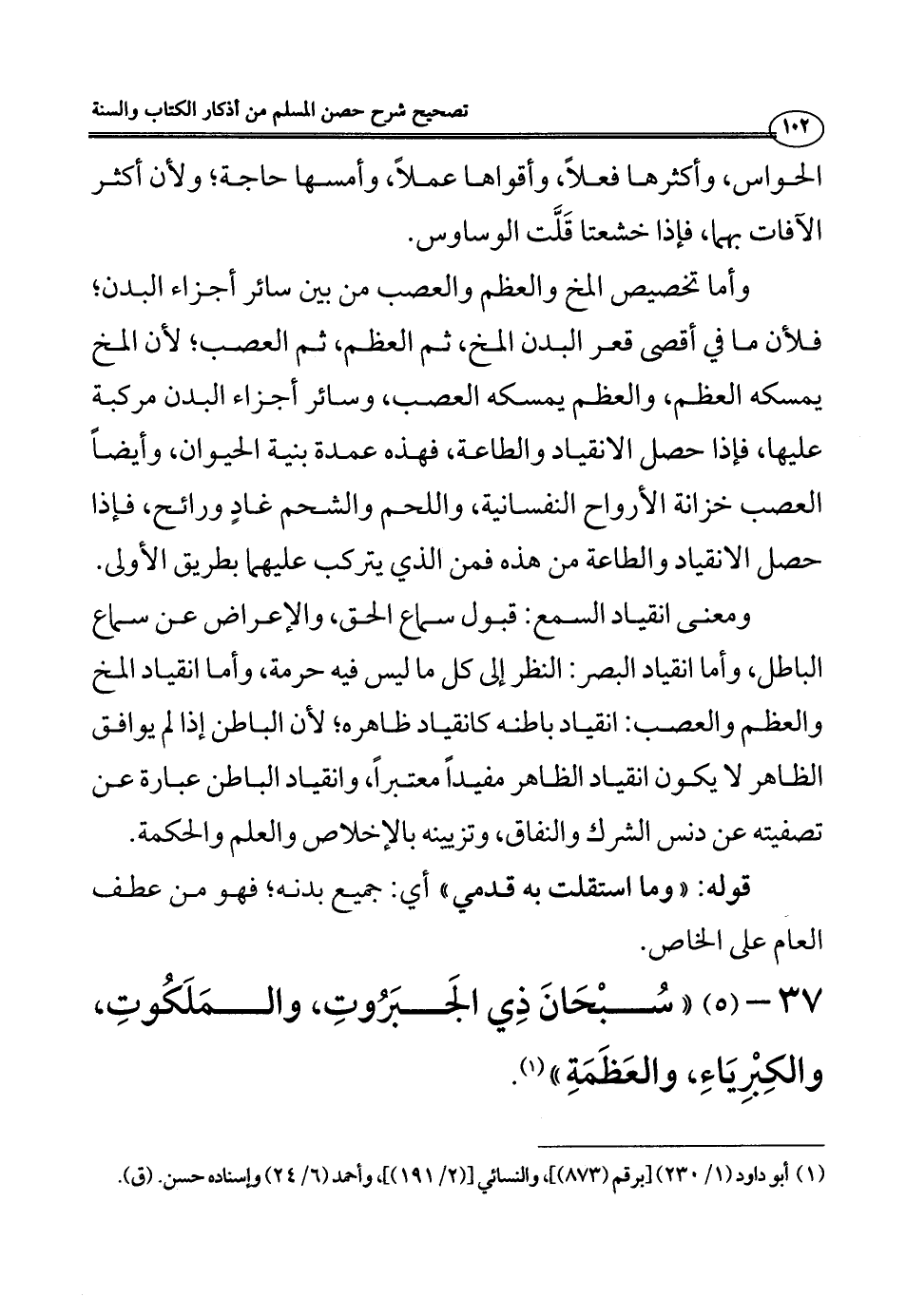 37 - (5) ((سُبْحَانَ ذِي الجَبَرُوتِ، والمَلَكُوتِ، والكِبْرِيَاءِ، والعَظَمَةِ)) (¬1).