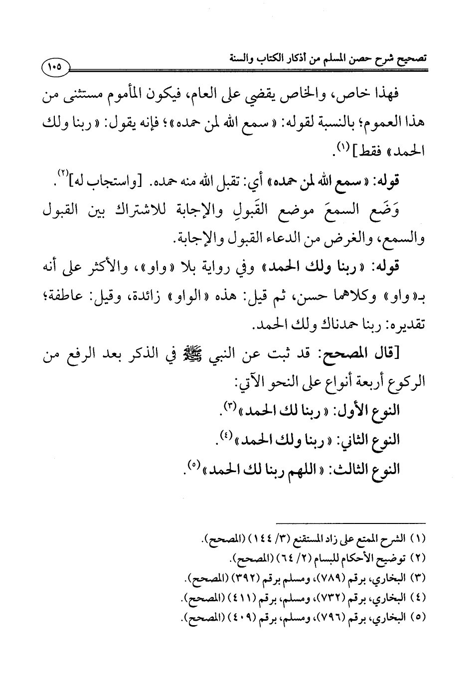 [قال المصحح: قد ثبت عن النبي - صلى الله عليه وسلم - في الذكر بعد الرفع من الركوع أربعة أنواع على النحو الآتي: