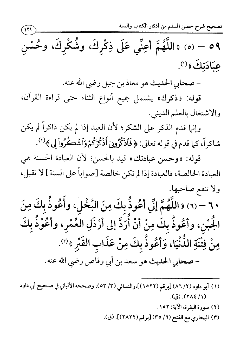 59 - (5) ((اللَّهُمَّ أعِنِّي عَلَى ذِكْرِكَ، وشُكْرِكَ، وحُسْنِ عِبَادَتِكَ)) (¬1).