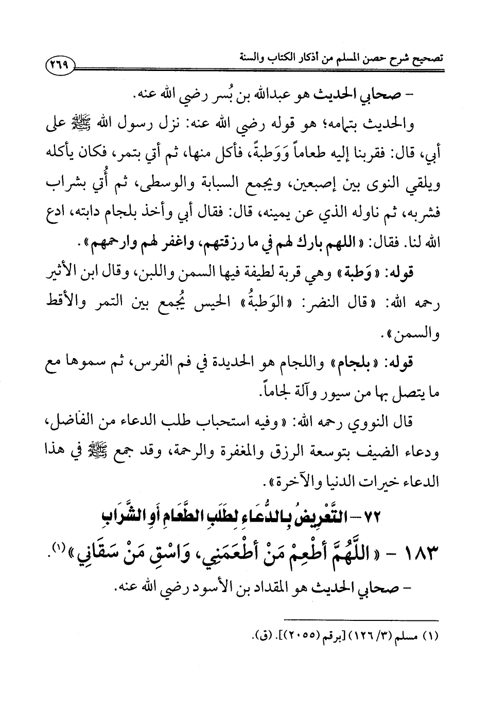 183 - ((اللَّهُمَّ أطْعِمْ مَنْ أطْعَمَنِي، وَاسْقِ مَنْ سَقَانِي)) (¬1).