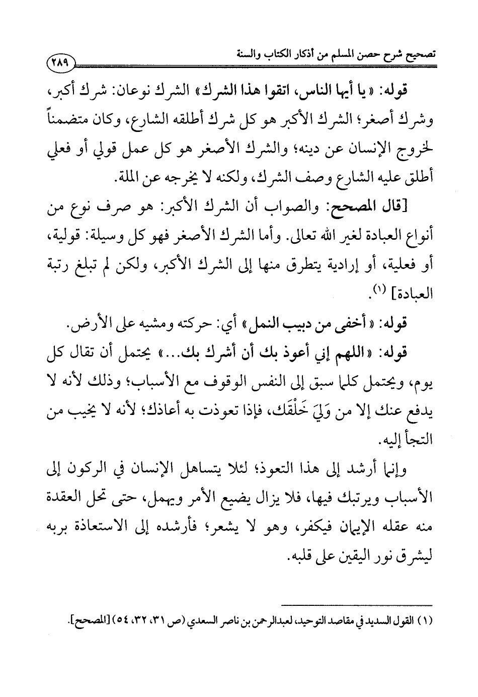 (¬1) القول السديد في مقاصد التوحيد، لعبد الرحمن بن ناصر السعدي (ص 31، 32، 54) [المصحح].