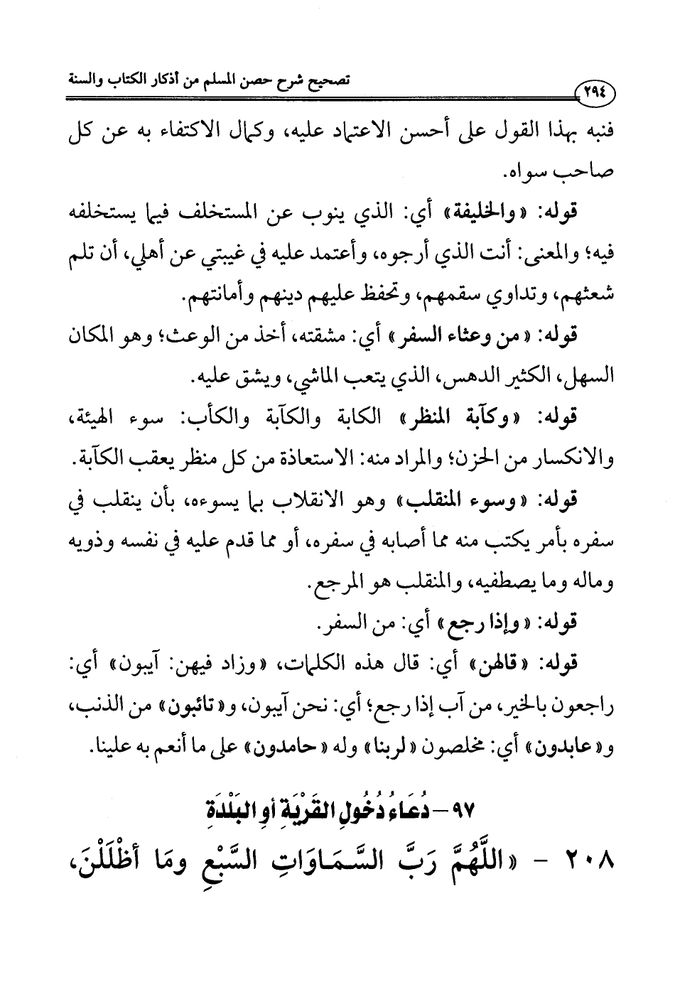 قوله: ((والخليفة)) أي: الذي ينوب عن المستخلف فيما يستخلفه فيه؛ والمعنى: أنت الذي أرجوه، وأعتمد عليه في غيبتي عن أهلي، أن تلم شعثهم، وتداوي سقمهم، وتحفظ عليهم دينهم وأمانتهم.