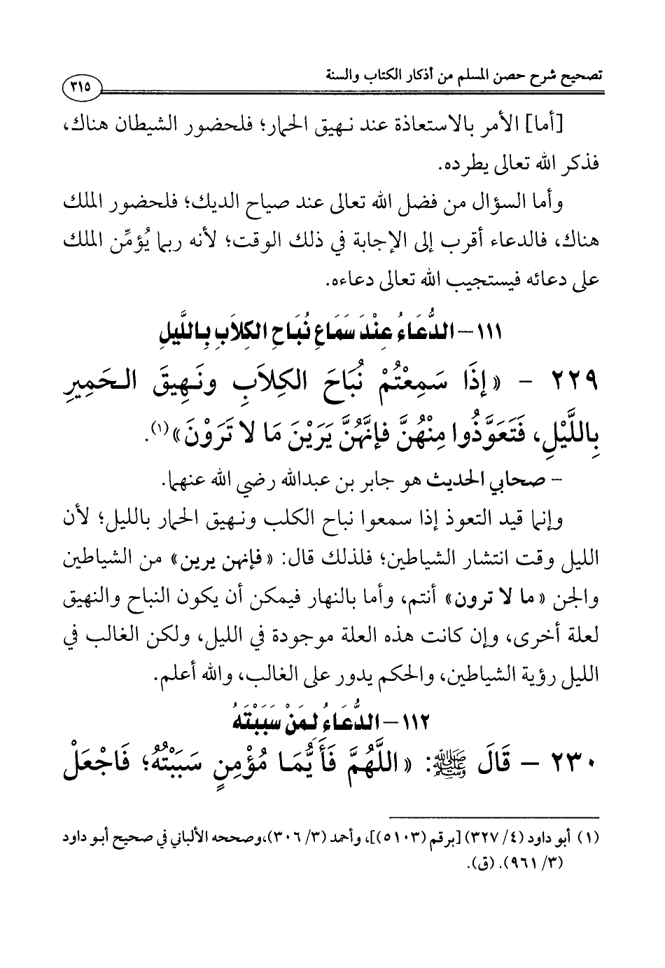111 - الدُّعَاءُ عِنْدَ سَمَاعِ نُبَاحِ الكِلاَبِ بِاللَّيلِ