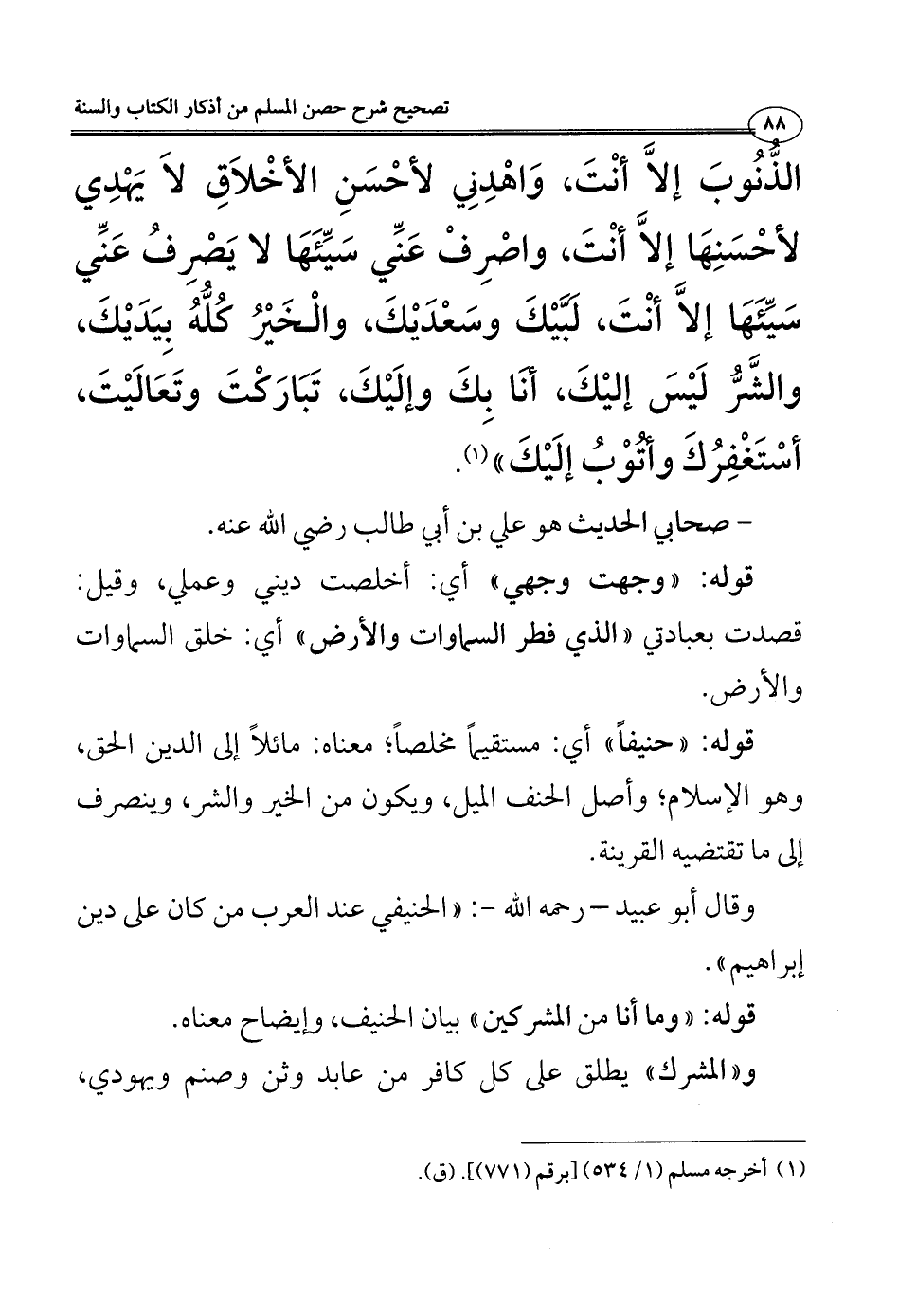 الذُّنُوبَ إلاَّ أنْتَ، وَاهْدِنِي لأحْسَنِ الأخْلاَقِ لاَ يَهْدِي لأحْسَنِهَا إلاَّ أنْتَ، واصْرِفْ عَنِّي سَيِّئَهَا لا يَصْرِفُ عَنِّي سَيِّئَهَا إلاَّ أنْتَ، لَبَّيْكَ وسَعْدَيْكَ، والْخَيْرُ كُلُّهُ بِيَدَيْكَ، والشَّرُّ لَيْسَ إليْكَ، أنَا بِكَ وإلَيْكَ، تَبَارَكْتَ وتَعَالَيْتَ، أسْتَغْفِرُكَ وأتُوْبُ إلَيْكَ)) (¬1).