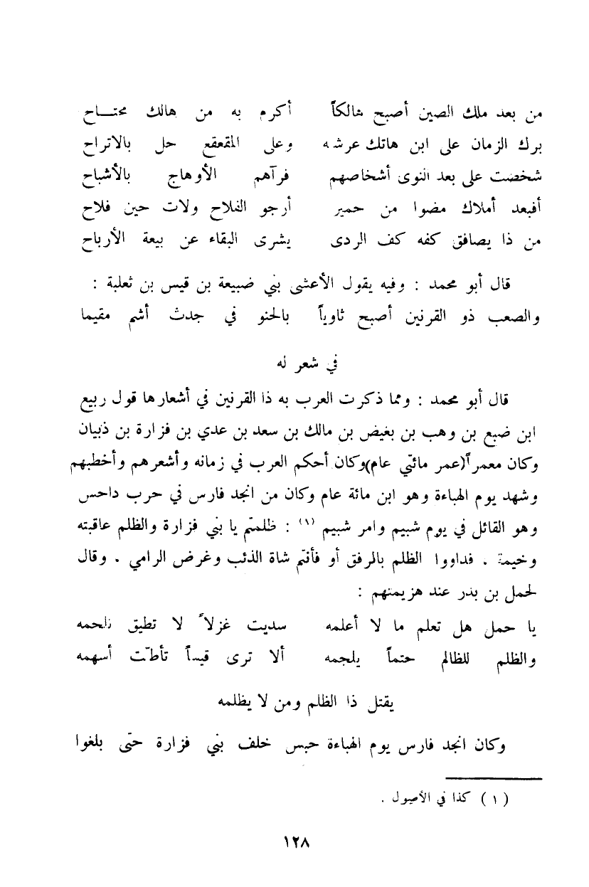 قال أبو محمد: وفيه يقول الأعشى بني ضبيعة بن قيس بن ثعلبة: