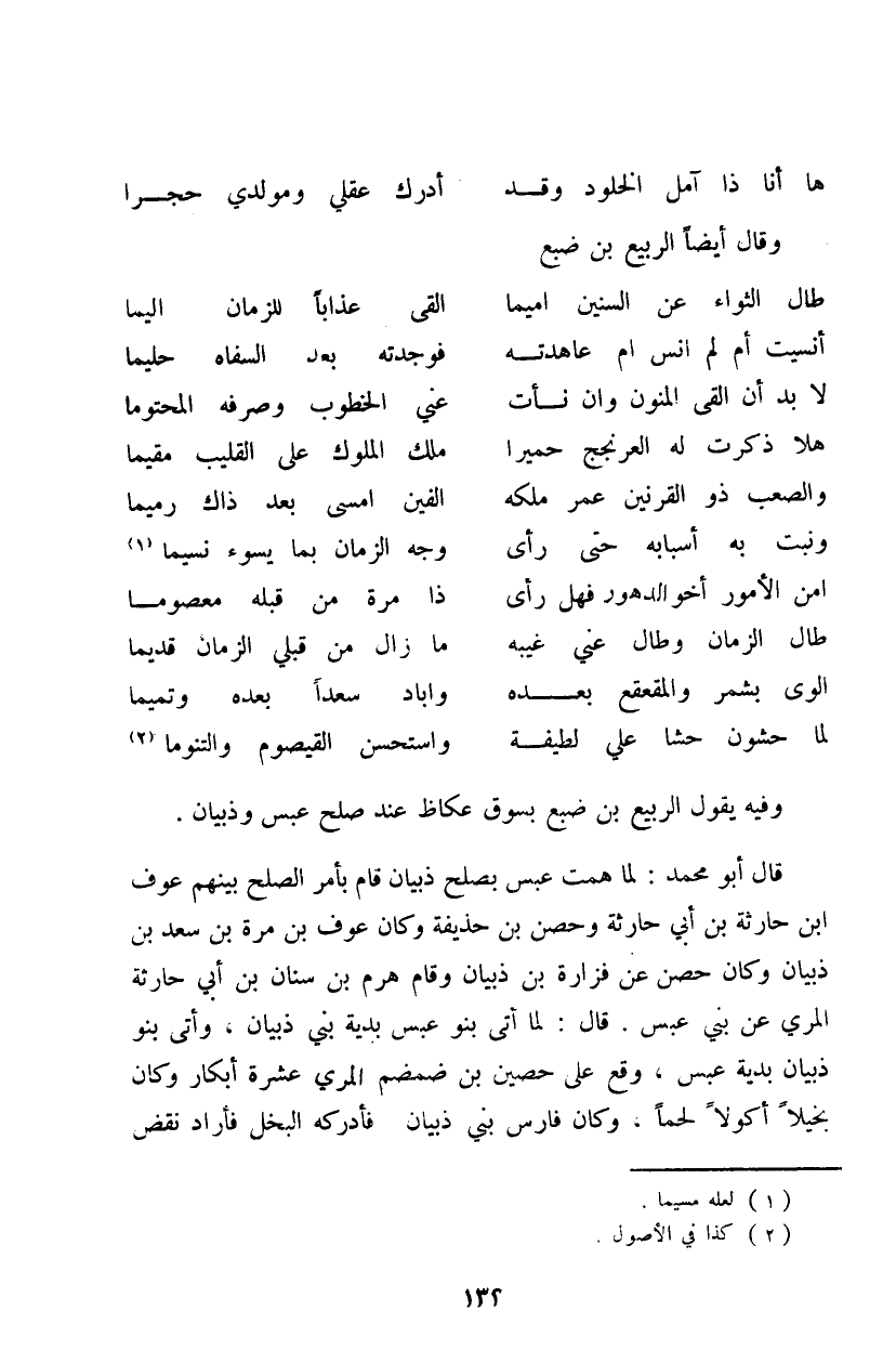 وفيه يقول الربيع بن ضبع بسوق عكاظ عند صلح عبس وذبيان.