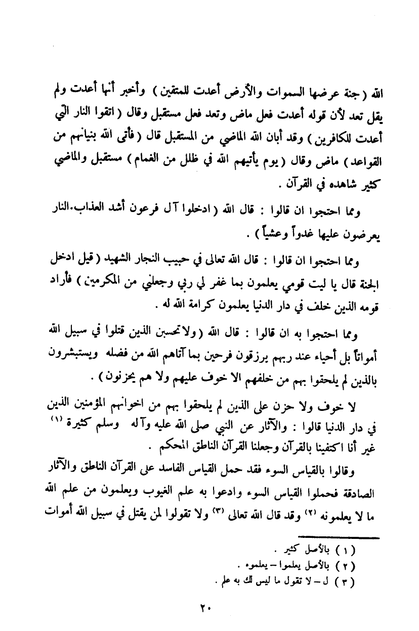 لا خوف ولا حزن على الذين لم يلحقوا بهم من إخوانهم المؤمنين الذين في دار الدنيا قالوا: والآثار عن النبي صلى الله عليه وآله وسلم كثيرة غير أنا اكتفينا بالقرآن وجعلنا القرآن الناطق المحكم.