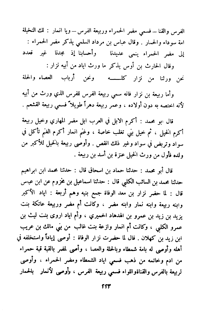 قال أبو محمد: أكرم الإبل في العرب ابل مضر المهاري وخيل ربيعة أكرم