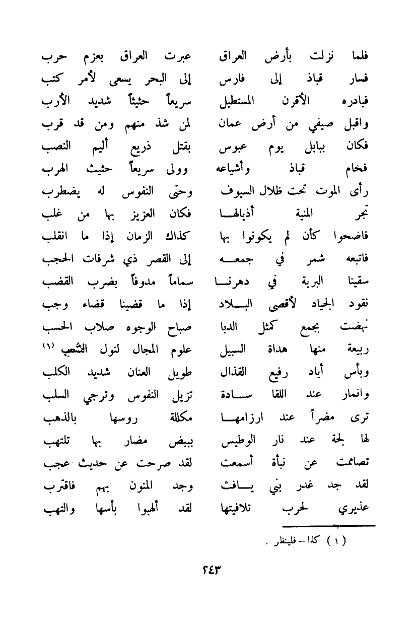 فلما نزلت بأرض العراق ... عبرت العراق بعزم حرب