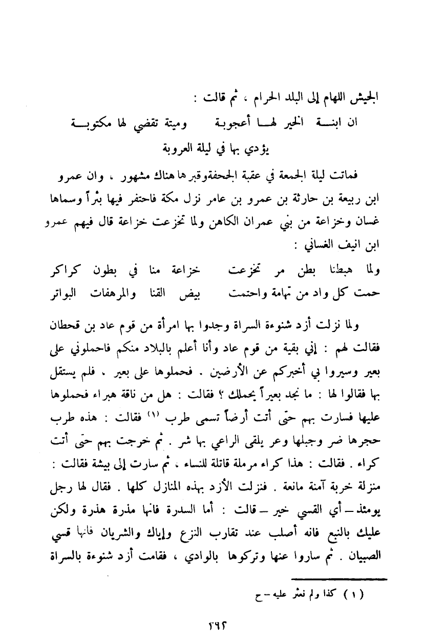الجيش اللهام إلى البلد الحرام. ثم قالت:
