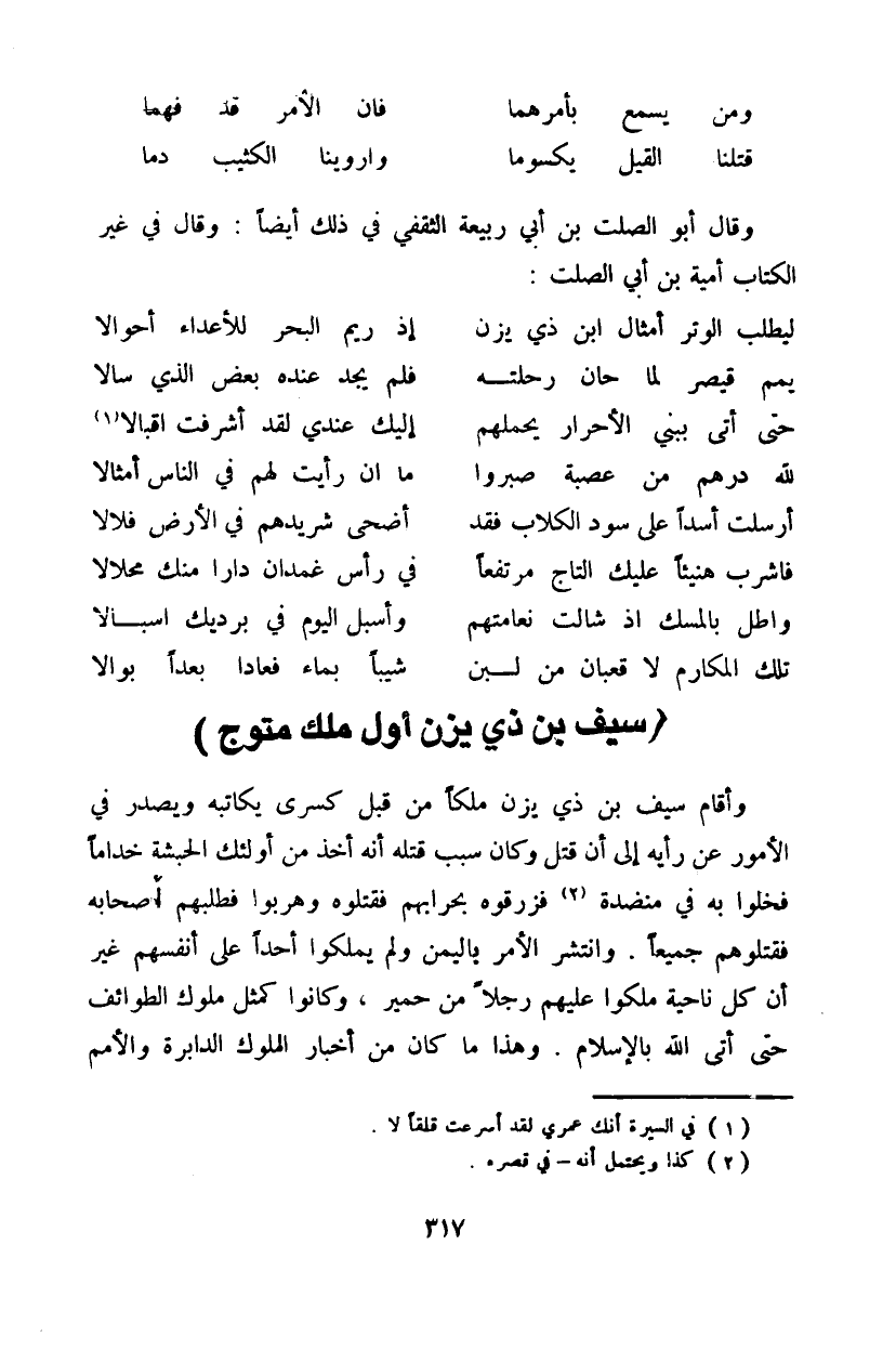 وقال أبو الصلت بن أبي ربيعة الثقفي في ذلك أيضاً: وقال في غير الكتاب أمية بن أبي الصلت: