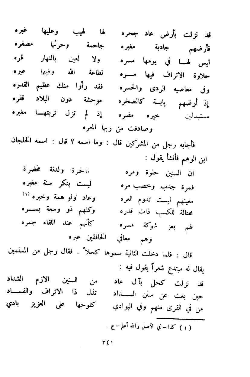 قد نزلت بأرض عاد حجره ... لها لهيب وعليها غبره