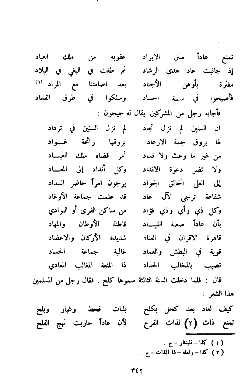 تمنع ذات لذات الفرح ... لأن عاداً حاربت نهج الفلح
