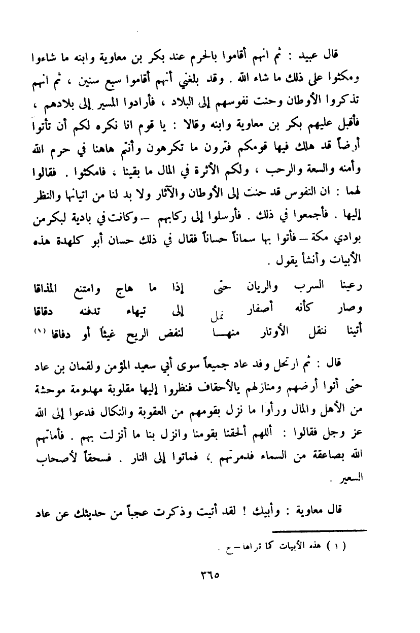 قال معاوية: وأبيك! لقد أتيت وذكرت عجباً من حديثك عن عاد