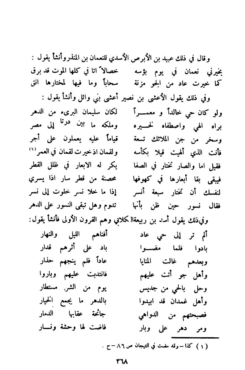 وقال في ذلك عبيد بن الأبرص الأسدي بن نعمان بن المنذر وأنشأ يقول: