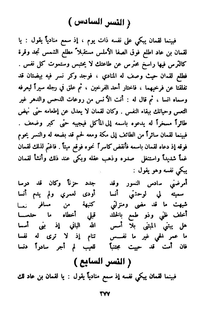 فبينما لقمان يبكي نفسه، إذ سمع منادياً يقول: يا لقمان بن عاد لك