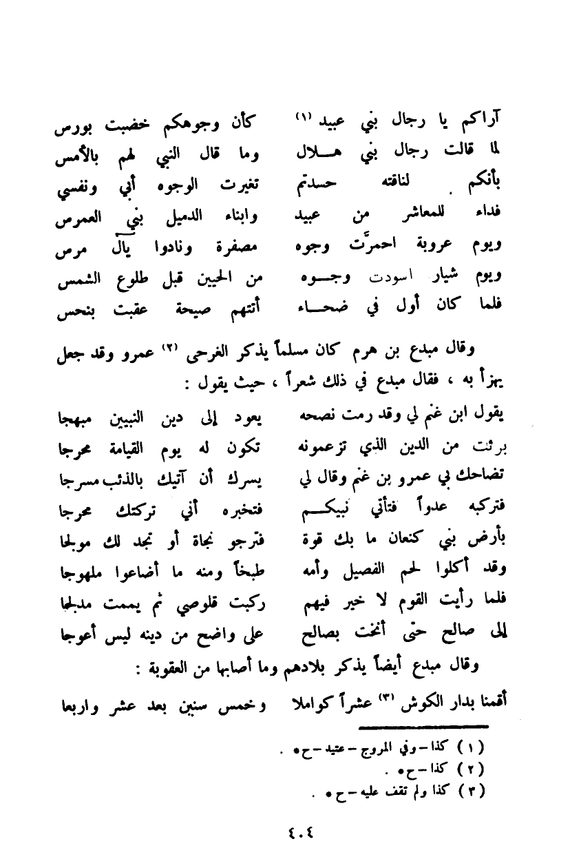 وقال مبدع بن هرم كان مسلماً يذكر الغرحى عمرو وقد جعل يهزأ به، فقال مبدع في ذلك شعراً، حيث يقول: