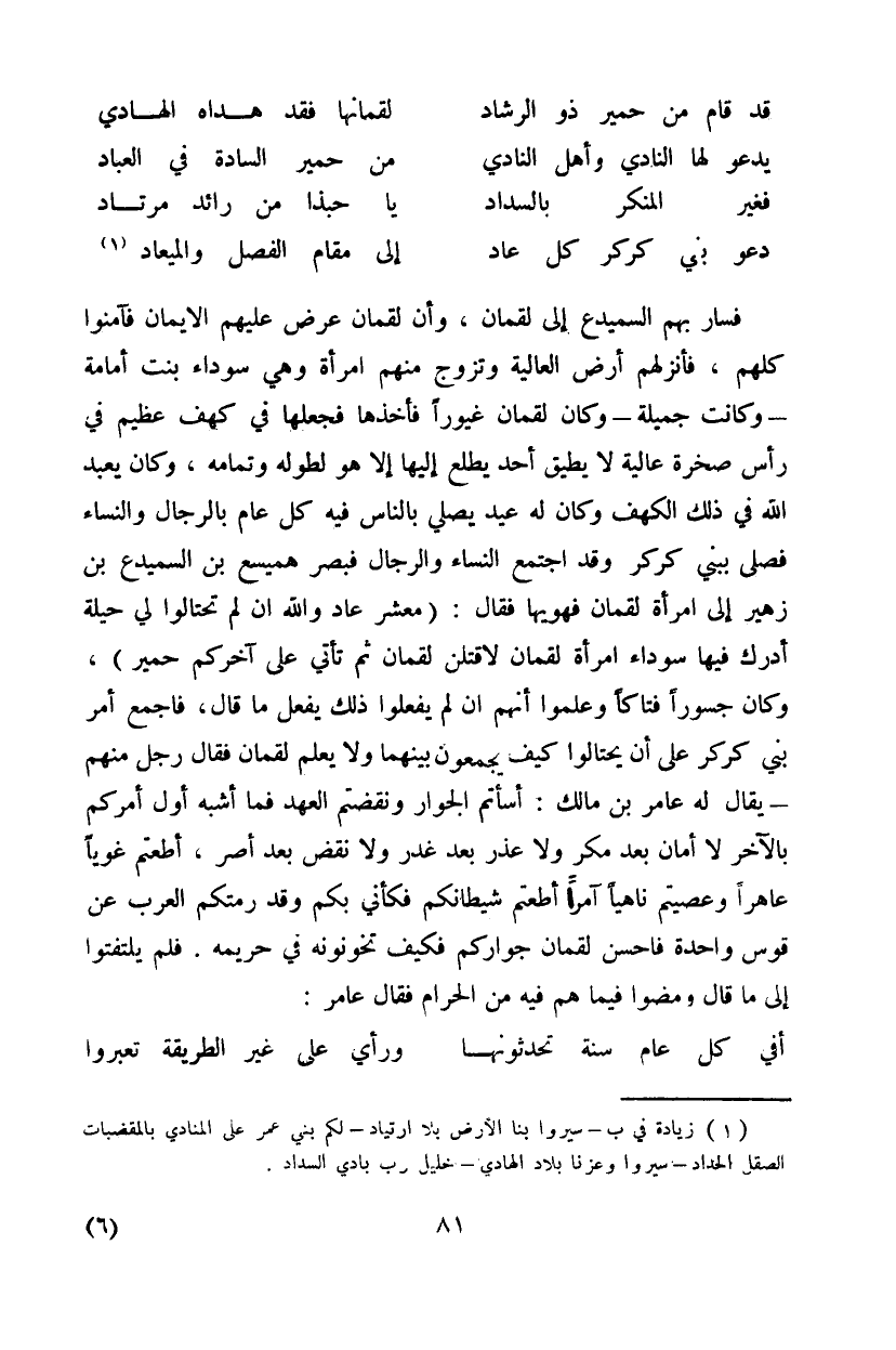 قد قام من حمير ذو الرشاد ... لقمانها فقد هداه الهادي