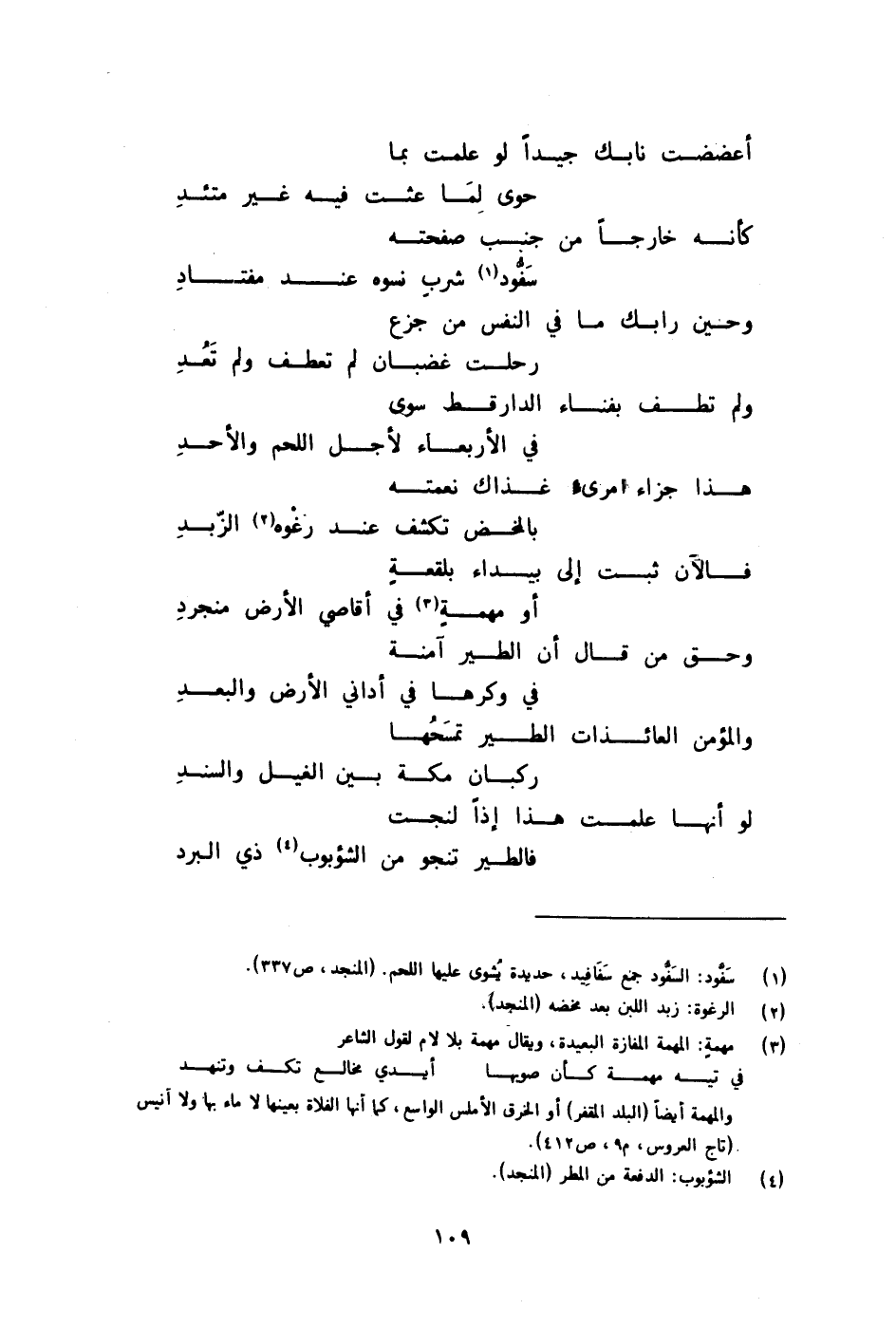 (وَحين رَابَك مَا فِي النَّفس من جزع ... رحلت غَضْبَان لم تعطف وَلم تعد)