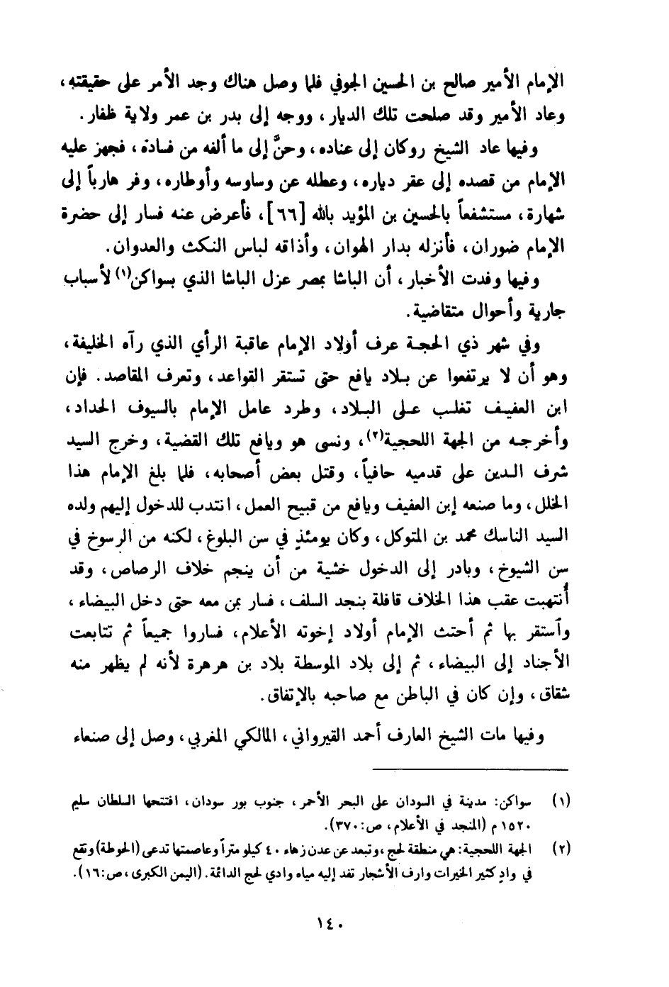 الإِمَام الْأَمِير صَالح بن الْحُسَيْن الجوفي فَلَمَّا وصل هُنَاكَ وجد الْأَمر على حقيقتة وَعَاد الْأَمِير وَقد صلحت تِلْكَ الديار وَوجه إِلَى بدر بن عمر ولَايَة ظفار