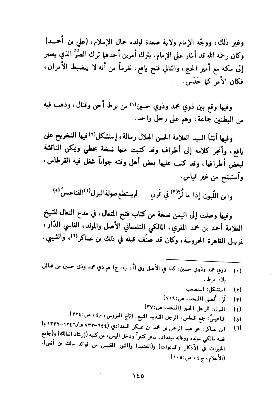 وَغير ذَلِك وَوجه الإِمَام ولَايَة صعدة لوَلَده جمال الْإِسْلَام عَليّ بن أَحْمد وَكَانَ رَحمَه الله قد أَشَارَ على الإِمَام بترك أَمريْن أَحدهمَا ترك الصر الَّذِي يصير إِلَى مَكَّة مَعَ أَمِير الْحَج وَالثَّانِي فتح يافع تفرسا من أَنه لَا يَنْضَبِط الْأَمْرَانِ فَكَانَ الْأَمر كَمَا حدس