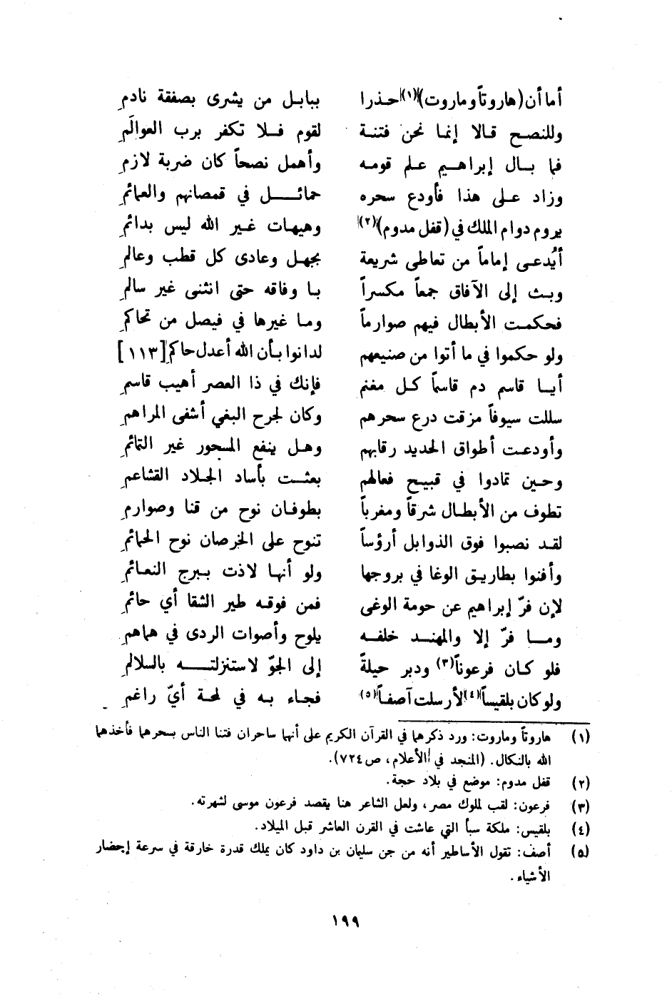 (أما أَن هاروتا وماروت حذرا ... بِبَابِل من يشرى بصفقه نادم)